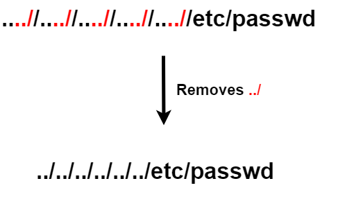 While this approach removes one occurrence of a traversal sequence (../), attackers could craft input with multiple instances of the sequence, such as ....//....//.../, which may still allow access to restricted files if the server doesn’t repeatedly sanitize or check for further sequences.