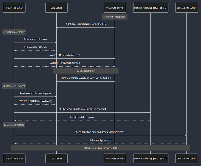 example.comis updated to resolve to the internal IP (e.g.,192.168.1.3).Malicious Request: The JavaScript sends a request to