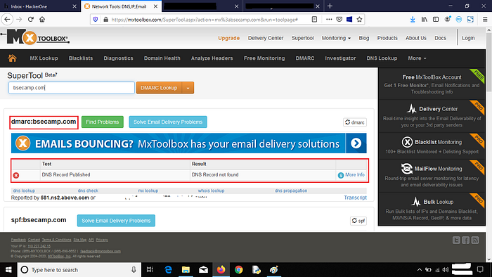 Missing of DMARC protocol for the particular email
