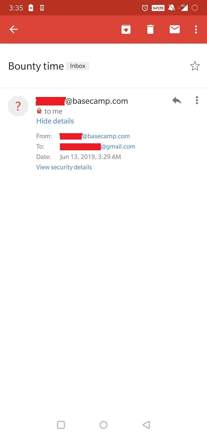 I found this vulnerability on BaseCamp a Project Management company. I exploited the vulnerability and reported to them, they triaged my report and after some days they resolved the issue and paid me the bounty of 100$.