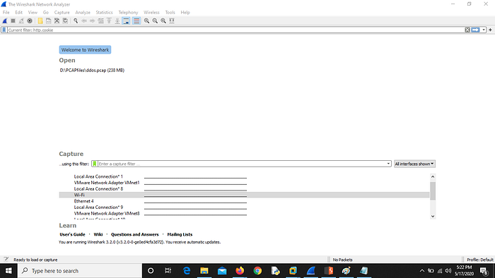 2. Start WireShark for intercepting traffic