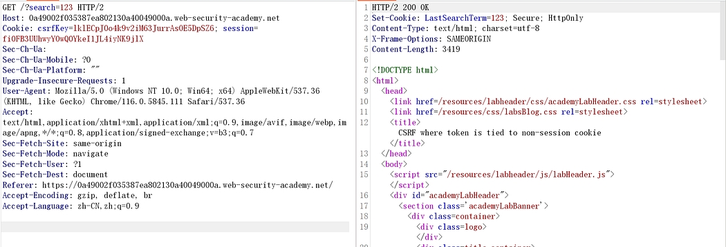 Lab: CSRF where token is tied to non-session cookie