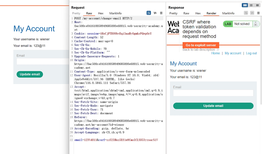 Lab: CSRF where token validation depends on request method
