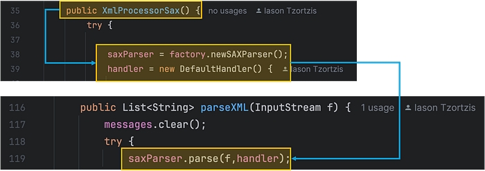 In the case of this challenge to configure the SAX Parser to not process External Entities we would include the following lines of code in our project: